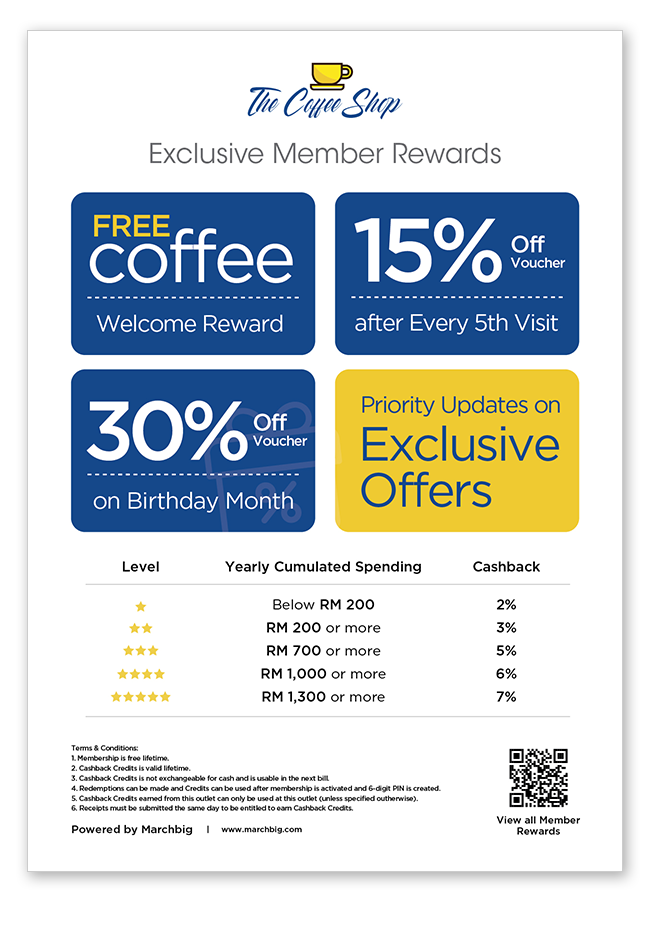 70% of your sales are contributed by 25% of your loyal customers. Our Tiered Cashback Program not only helps you build and maintain customer loyalty but more importantly differentiates your normal (1-star) versus high value (5-stars) customers.